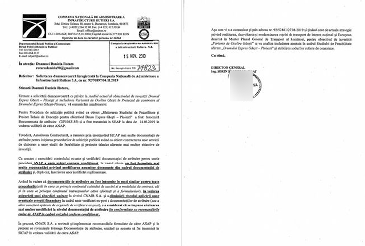 Găeşteanca ne-a pus la dispoziţie şi răspunsurile pe care le-a primit din partea CNAIR, pe care vă invităm să le citiţi.