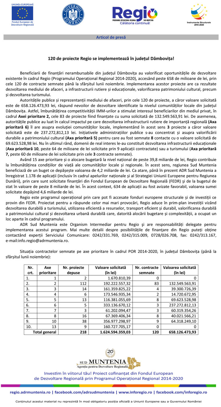 120 de proiecte Regio se implementează în județul Dâmbovița!