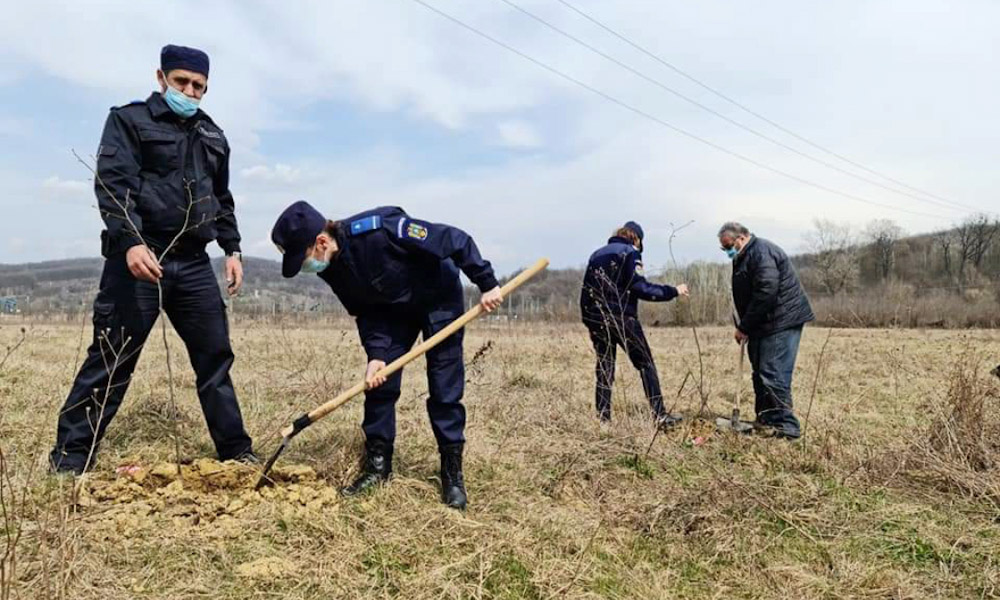 Angajații Primăriei Gura Ocniței și jandarmii de la Ochiuri au plantat tei