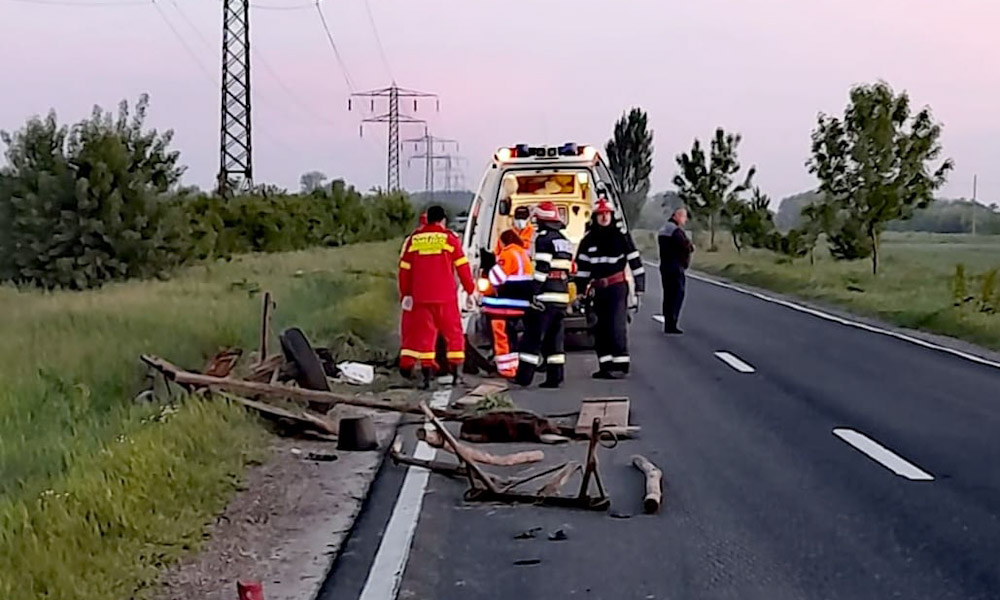 Accident rutier, în această dimineață, pe DN 71, Târgovişte-Bâldana, pe teritoriul comunei Conțești, între o autoutilitară și o căruță.