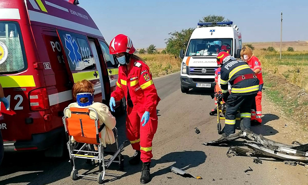 La fața locului au acționat două ambulanțe SAJ, un echipaj SMURD și pompierii din cadrul Detașamentului Giurgiu, cu o descarcerare și o autospecială de stingere.