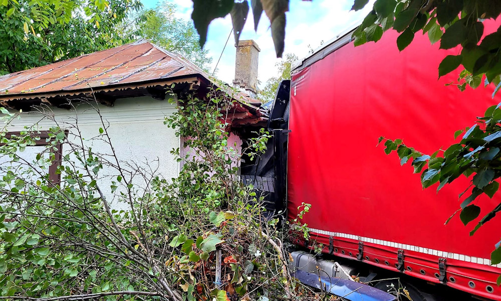 Șoferul unui TIR care se deplasa pe un drum din localitatea Bucșani, județul Giurgiu, a pierdut controlul asupra volanului, iar mastodontul auto a trecut ca prin brânză prin gardul unei gospodării, intrând cu forță într-o casă.
