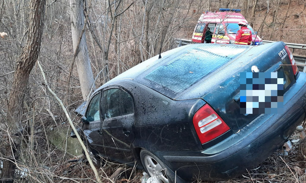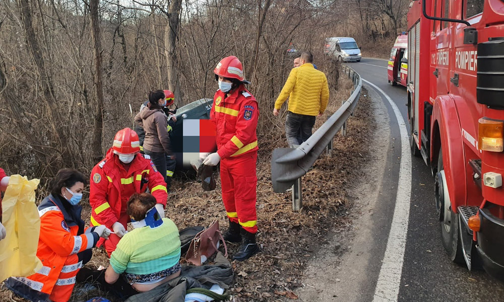 Patru persoane au ajuns cu mașina într-o râpă, în județul Dâmbovița