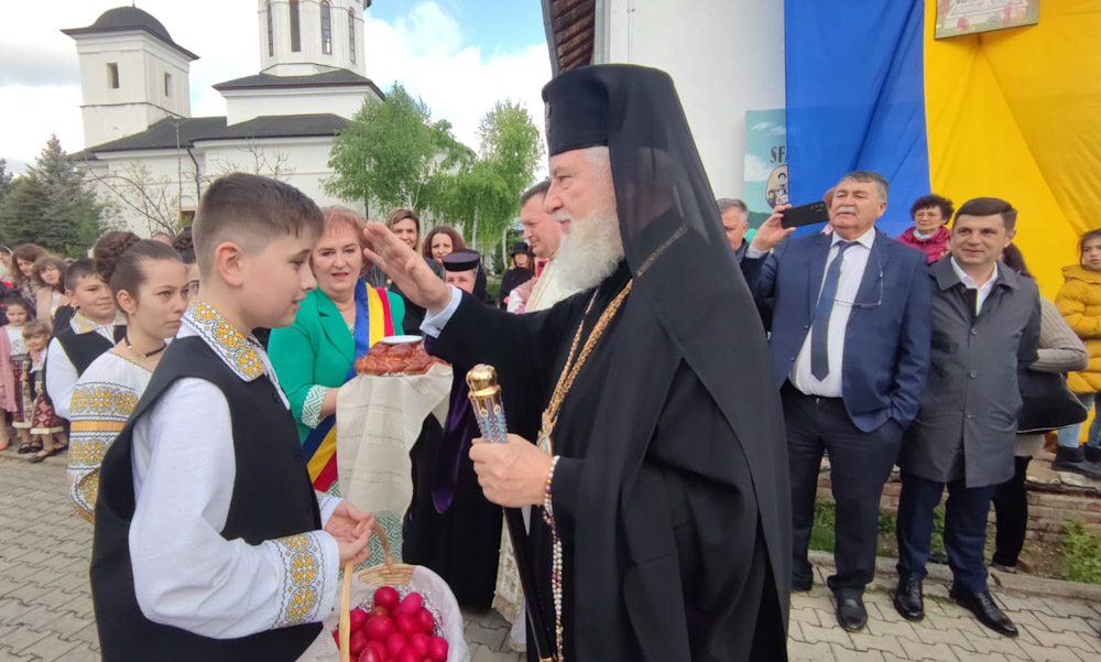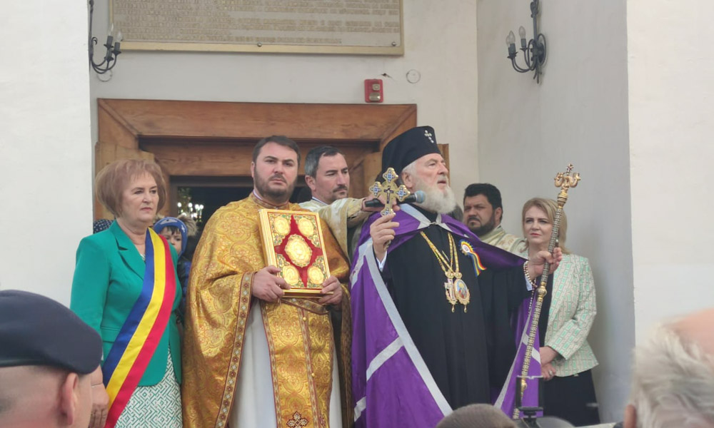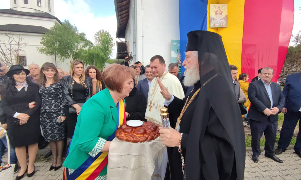 În jurul orei 11:00, a sosit IPS Nifon, arhiepiscop și mitropolit al Târgoviștei, care, așa cum cere tradiția și protocolul bisericesc, a fost întâmpinat de zecile de preoți și, bineînțeles, de primarul Luisa Bărboiu, care l-a primit cu pâine și sare.