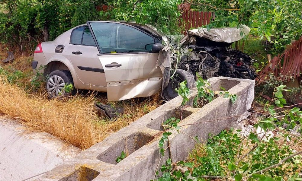 Un autoturism a intrat într-un stâlp de susținerea a rețelelor electrice de pe marginea carosabilului, pe care l-a culcat la pământ și a afectat și o conducă de gaze. Zgomotul puternic produs de gazele naturale i-a speriat pe ceilalți participanți la trafic și pe locuitorii gospodăriilor învecinate.