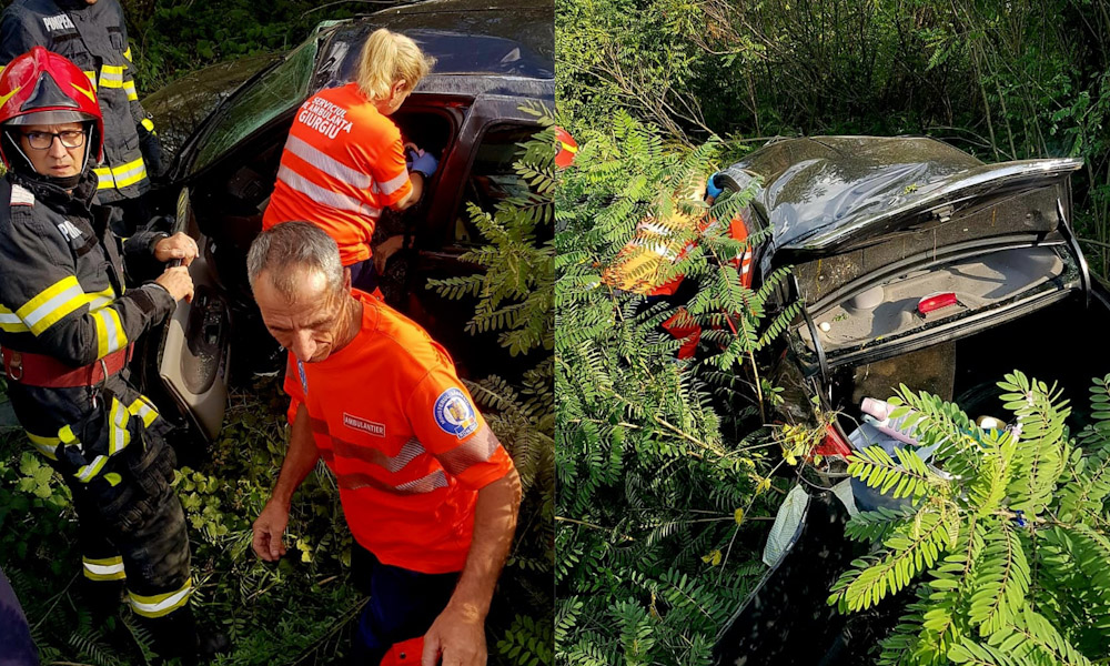 O șoferiță, în vârstă de 55 de ani, a pierdut controlul asupra volanului și a ajuns cu mașina în lăstărișul din afara părții carosabile.
