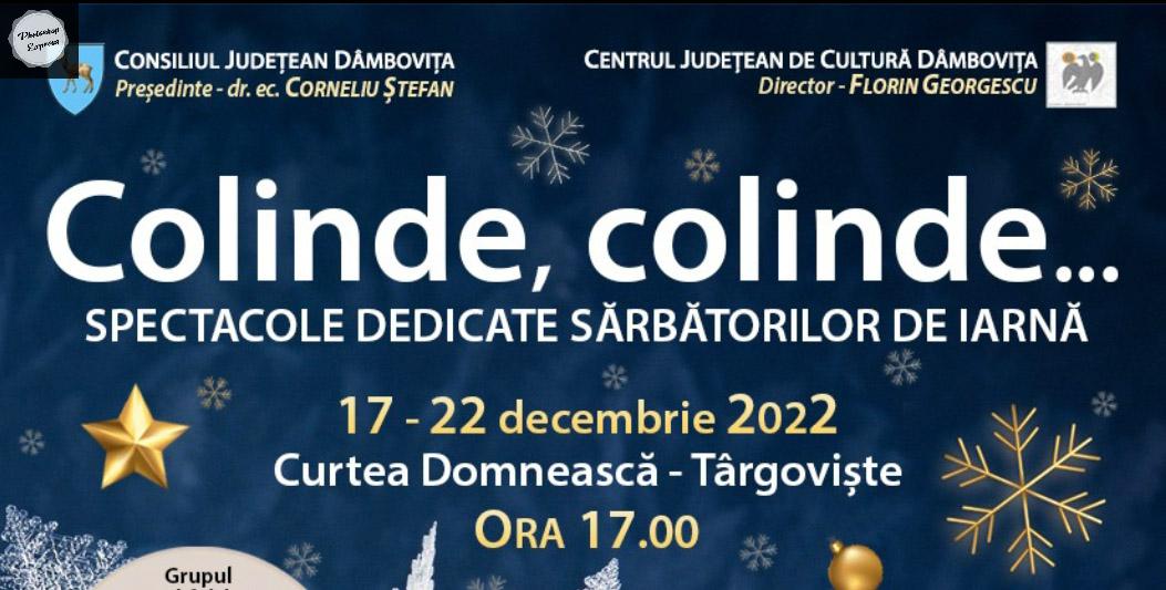 În perioada 17-22 decembrie 2022, Consiliul Județean Dâmbovița și Centrul Județean de Cultură vă invită la spectacolul maraton de sărbători intitulat „Colinde, colinde”. Evenimentul se va consuma pe scena din incinta târgului de Crăciun amenajat la Curtea Domnească din Târgoviște – se precizează într-un comunicat transmis către mass-media.