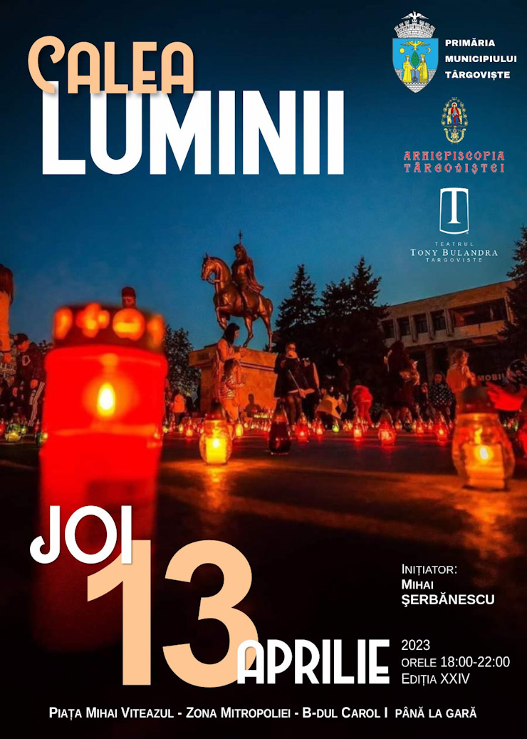 La Târgoviște, de 24 de ani, în Joia Mare, ca un preambul al Sfintelor Sărbători de Paște, se organizează evenimentul cultural-creștin „Calea Luminii”. Anul acesta, vor fi aprinse 2024 de lumânări.