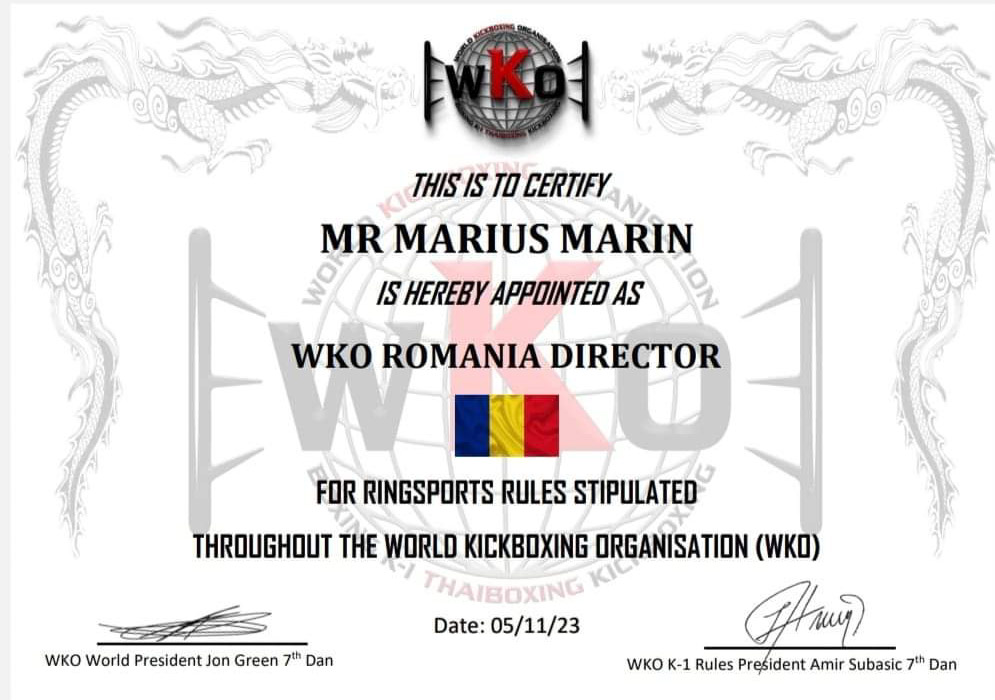 Târgovișteanul Marin Marius Mihai, fondatorul și antrenorul principal al Clubului Sportiv Marin Marius Mihai Marțial Arts, a fost desemnat, astăzi – 5 noiembrie 2023, președinte WKO România.