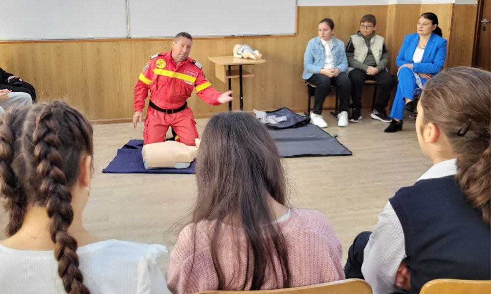 Folosind un manechin, paramedicul SMURD le-a arătat elevilor cum să execute corect loviturile între omoplați, compresiunile abdominale (manevra Heimlich) și manevrele de resuscitare, iar aceștia au avut posibilitatea de a le exersa. Toți participanții au fost interesați de cunoașterea metodelor de acordare a primului ajutor, activitatea fiind interactivă.