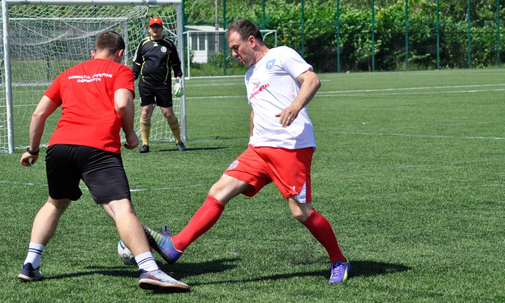 Analiză a selecționatelor intrate în teren. Primarii parcă mai vioi, mai obișnuiți cu mișcarea și cu tehnica fotbalistică. Unii chiar joacă la naționala primarilor! Jucătorii de la CJD, un picuț mai greoi, dar mai dificil de a le sta în față. Le iei mingea și fugi! E mai bine. Șuturi puternice, pase uneori ușor nesigure, dar bine calculate.
