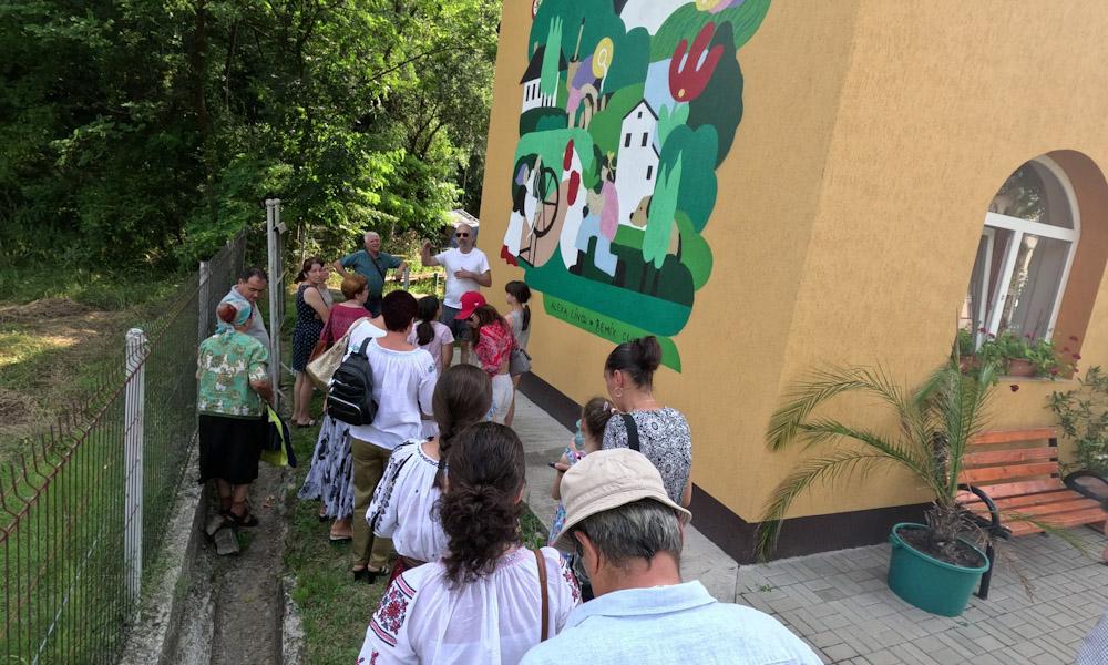 „Natura a început să ia înapoi ce e al ei” – spune dramaturgul Ovidiu Cioclov în textul-colaj „Re:Generație” (scris împreună cu Vero Nica), dar artista ALEXA LINCU a luat natura, oamenii și amintirile din comunele Vârfuri și Valea Lungă și le-a transpus într-o pictură murală vernisată pe 8 iulie 2024 la Primăria Vârfuri.