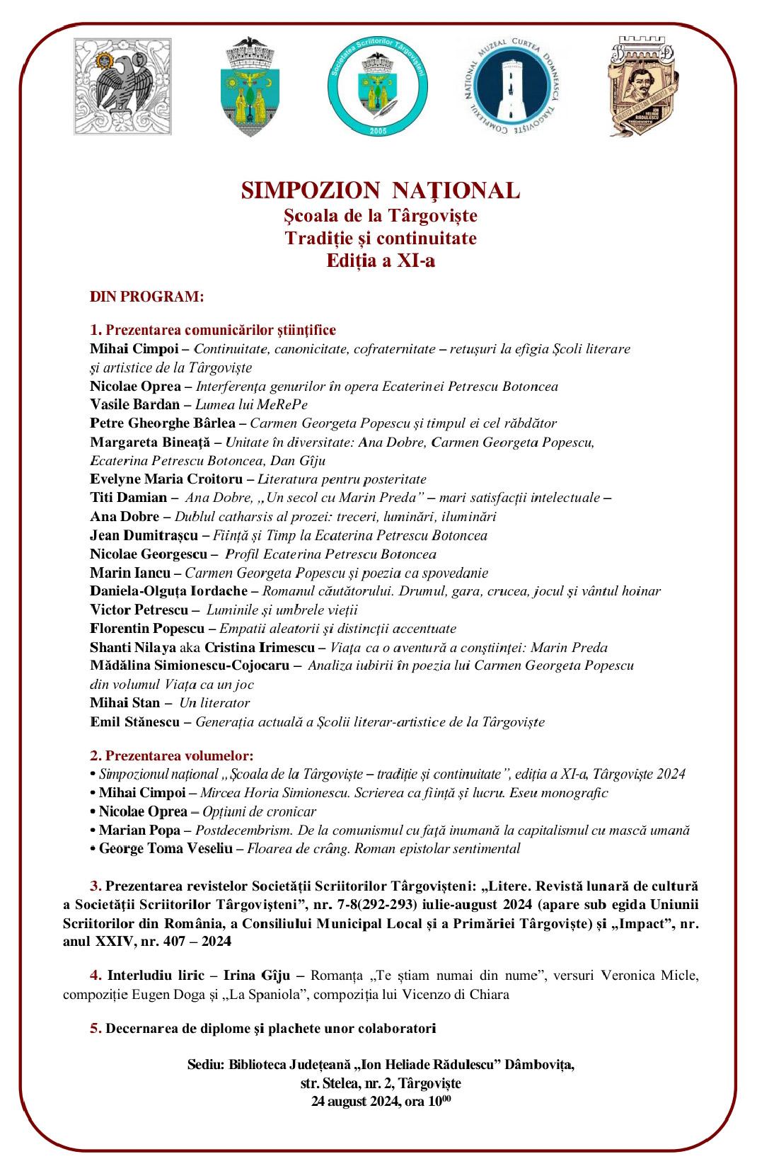 Sâmbătă – 24 august 2024, de la ora 10:00, Biblioteca Județeană IH Rădulescu Dâmbovița găzduiește cea de-a XI-a ediție a Simpozionului național „Școala de la Târgoviște – tradiție și continuitate”.