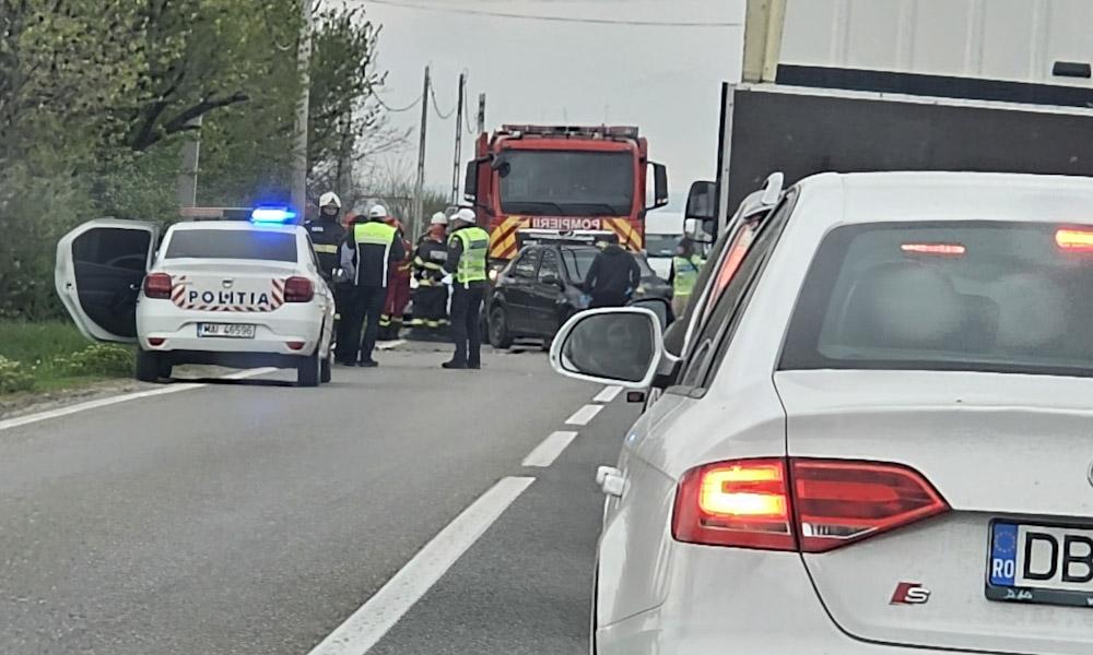 Accident rutier, în această după-amiază, pe DN 72, la ieșire din Săcuieni, județul Dâmbovița, spre Târgoviște.
