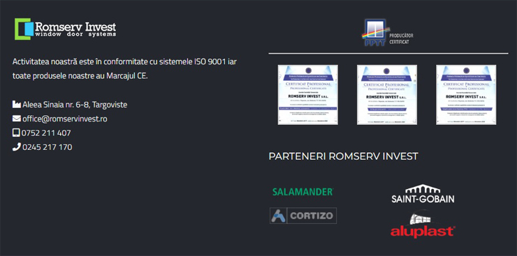 Romserv Invest este una dintre cele mai mari companii care produce tâmplărie din PVC și Aluminiu din județul Dâmbovița, cu o experiență de peste 20 de ani în domeniu.