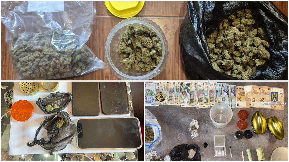 În timpul descinderilor au fost descoperite și ridicate aproximativ 650 de grame de canabis, 23 de grame de substanţă cristalină 2-MMC, drog de mare risc, cântare electronice, grindere, obiecte purtând urme de substanță, sume de bani în lei și euro, precum și alte mijloace de probă.