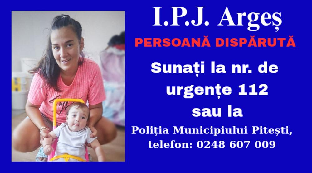 Persoanele care pot oferi informații despre mama și fiica date dispărute sunt rugate să anunțe Serviciul Unic de Urgență 112 sau să ia legătura cu Poliția Municipiului Pitești, la numărul 0248.607.009.