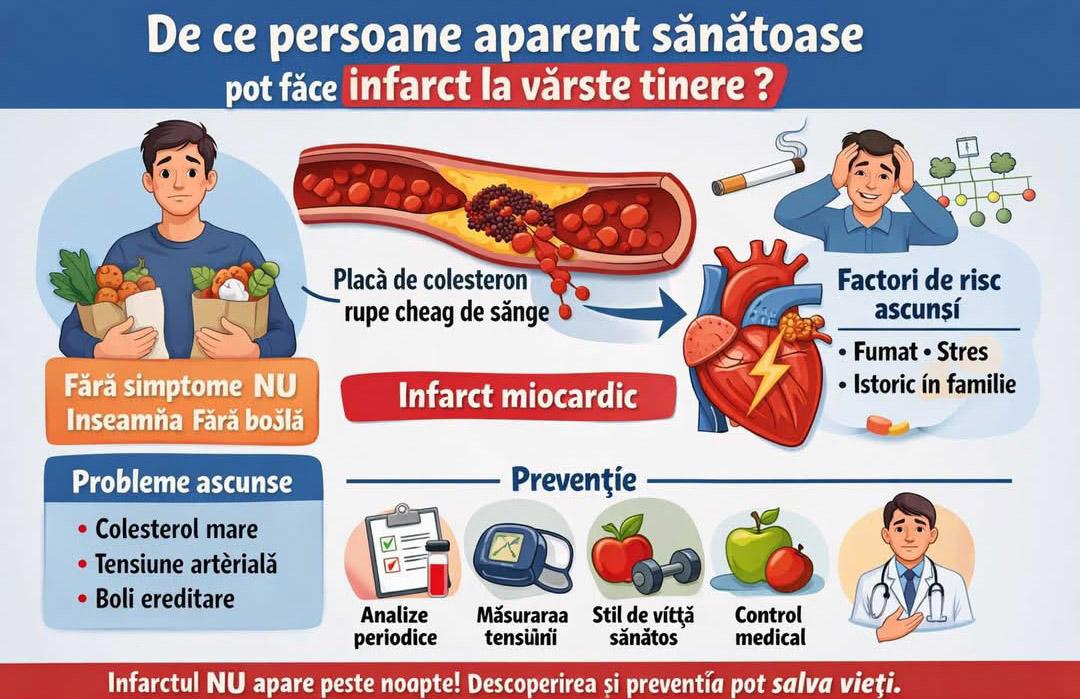 Mulți oameni spun: „Nu am fost niciodată bolnav” sau „Era sănătos, activ, nu se plângea de nimic”. Totuși, infarctul miocardic poate apărea brusc, chiar și la persoane tinere. De ce?