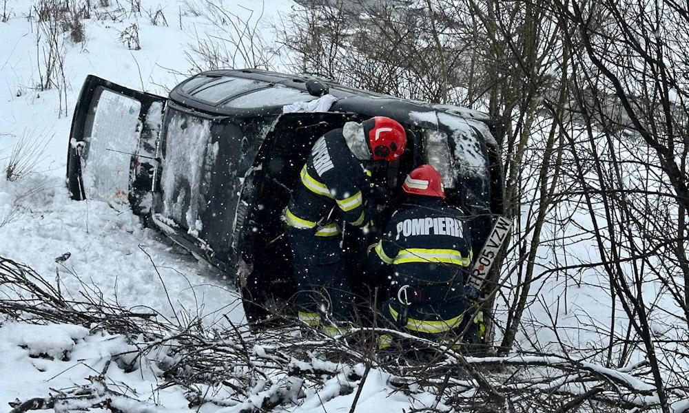 Accident rutier, în această dimineață, în jurul orei 10:45, pe drumul european E70, între localitățile Prunaru (Teleorman) și Naipu (Giurgiu). Un șofer de 38 de ani, pur și simplu, a „zburat” cu mașina peste parapetul metalic de la marginea șoselei și s-a răsturnat în afara carosabilului.