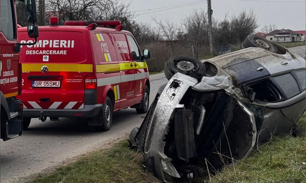Mașină răsturnată în Buturugeni, județul Giurgiu