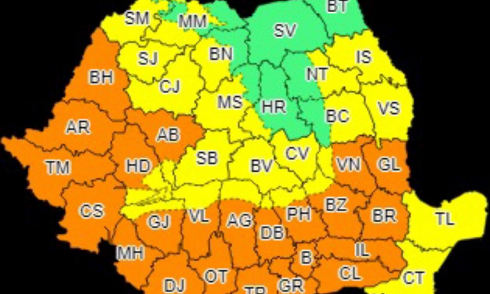 Meteorologii au emis un nou cod portocaliu de caniculă și disconfort termic accentuat, valabil mâine, 26 iulie 2022, în mai multe județe din țară, conform hărții...