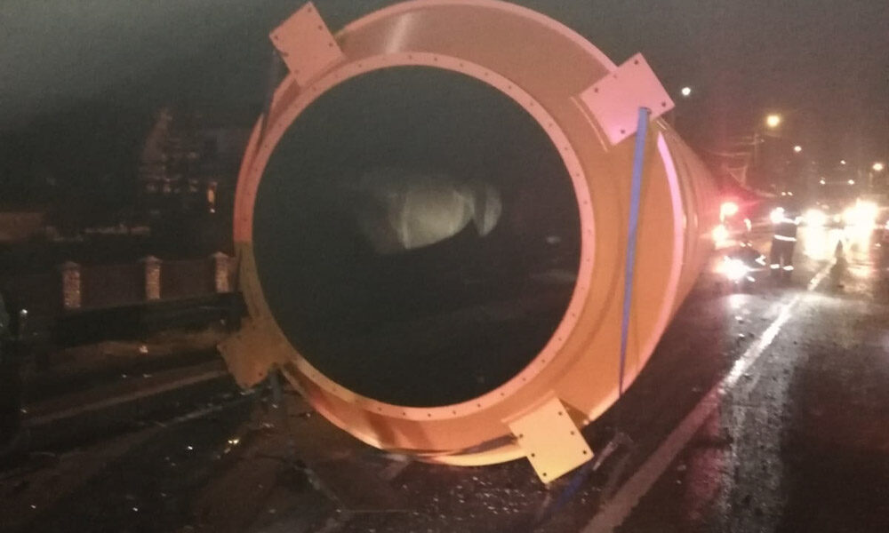 Cilindru de mare tonaj a căzut dintr-un TIR și a lovit un autoturism în trafic!