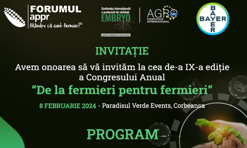 Forumul Agricultorilor și Procesatorilor Profesioniști din România (APPR) – Mândru că sunt fermier va organiza, joi – 8 februarie 2024, de la ora 12:30, cea de-a...