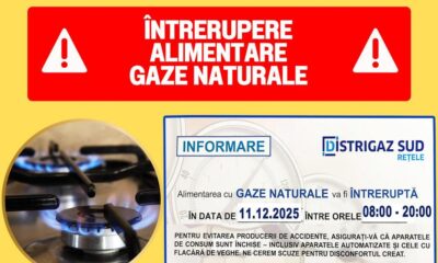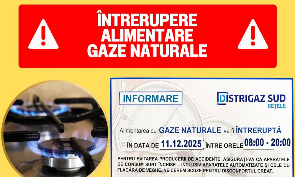 Primăria Titu îi informează pe locuitorii orașului că, joi – 11 decembrie 2025, va fi întreruptă alimentarea cu gaze naturale în intervalul orar 08:00 – 20:00,...