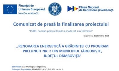 Proiectul de renovare energetică a imobilului Grădiniței Nr. 2 din Târgoviște (Cartierul Suseni) va fi finalizat până la jumătatea lunii februarie 2025 – a anunțat primarul...