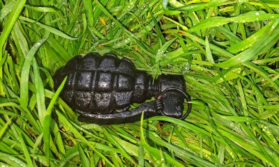 De o uimire vecină cu groaza a fost cuprins un șofer când, după ce a făcut câțiva pași, a văzut în iarbă o grenadă aproape intactă....