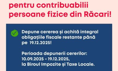Primăria Municipiului Târgoviște informează contribuabilii cu restanțe la plata taxelor și impozitelor locale – atât persoane fizice, cât și persoane juridice – că pot fi scutiți...